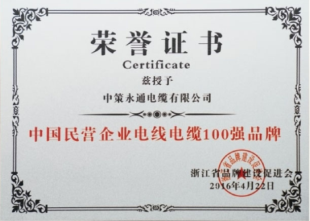 公司為浙江省電線電纜行業品牌10強,中國民營企業電線電纜100強品牌,并獲得國家專精特新小巨人企業、國家高新技術企業、省科技型中小企業、省專精特新中小企業、區政府質量獎、浙江制造“品”字標認證等多項榮譽。中策永通電纜有限公司生產設備精湛,技術力量雄厚,加工工藝先進,檢測工序齊全,質量體系完善,售后服務周到。以專業和品質為客戶提供優質的產品與服務,不斷在產品多元化、效益規?;⒓夹g高新化、體制現代化中求突破,繼續擴大和保持在電線電纜領域的引領地位。